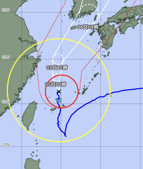 もう少し右側にズレたら間違いなく本島に直撃しそうな台風11号は、最大瞬間風速60mを維持したまま北上しそうです🌀